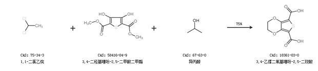 2.通過1,1-二氯乙烷、3,4-二羥基噻吩-2,5-二甲酸二甲酯和異丙醇合成3,4-乙撐二氧基噻吩-2,5-二羧酸,收率約75%;