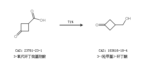 1.通過3-氧代環(huán)丁烷基羧酸合成3-(羥甲基)-環(huán)丁酮,收率約71%;