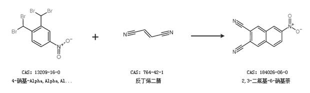 2.通過(guò)4-硝基-Alpha,Alpha,Alpha’,Alpha’-四溴鄰二甲苯和反丁烯二腈合成2,3-二氰基-6-硝基萘