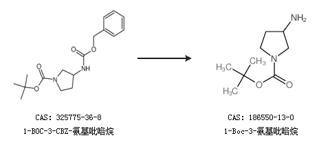 1.通過1-BOC-3-CBZ-氨基吡咯烷合成1-Boc-3-氨基吡咯烷
