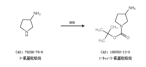 2.通過3-氨基吡咯烷合成1-Boc-3-氨基吡咯烷,收率約98%;