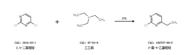 2.通過2,4-二氯嘧啶和三乙鋁合成2-氯-4-乙基嘧啶,收率約37%;