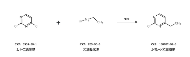 1.通過2,4-二氯嘧啶和乙基溴化鎂合成2-氯-4-乙基嘧啶,收率約36%;