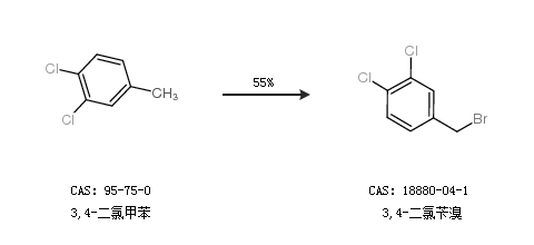 1.通過3,4-二氯甲苯合成3,4-二氯芐溴,收率約67%;