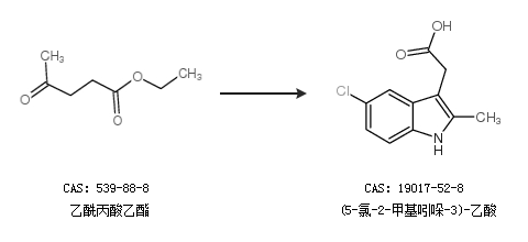 2.通過乙酰丙酸乙酯合成(5-氯-2-甲基吲哚-3)-乙酸
