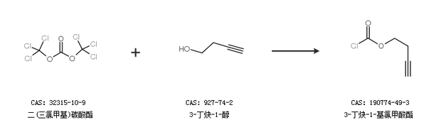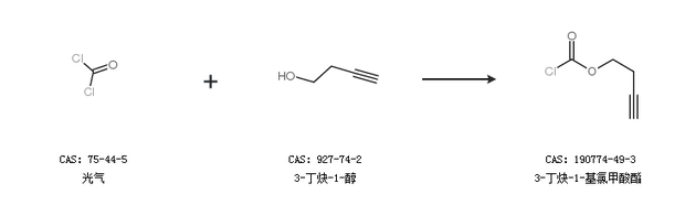 1.通過光氣和3-丁炔-1-醇合成3-丁炔-1-基氯甲酸酯