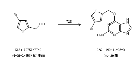 1.通過(4-溴-2-噻吩基)甲醇合成羅米魯曲,收率約72%;