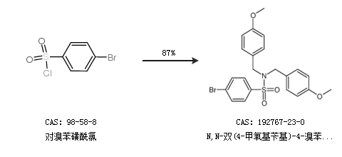 1.通過對溴苯磺酰氯合成N,N-雙(4-甲氧基芐基)-4-溴苯磺酰胺,收率約87%;