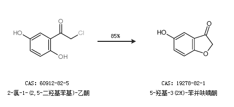 1.通過2-氯-1-(2,5-二羥基苯基)-乙酮合成5-羥基-3(2H)-苯并呋喃酮,收率約85%;