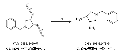 1.通過(3S,4s)-3,4-二疊氮基-1-(苯基甲基)吡咯烷合成(S,s)-n-芐基-3,4-反式-二氨基吡咯烷,收率約10%;