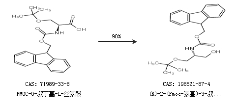 1.通過FMOC-O-叔丁基-L-絲氨酸合成(R)-2-(Fmoc-氨基)-3-叔丁氧基-1-丙醇,收率約90%;