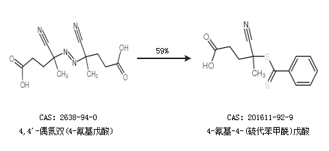 2.通過4,4''-偶氮雙(4-氰基戊酸)合成4-氰基-4-(硫代苯甲酰)戊酸,收率約59%;