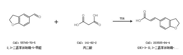 1.通過2,3-二氫苯并呋喃-5-甲醛和丙二酸合成(2E)-3-(2,3-二氫苯并呋喃-5-基)丙酸,收率約75%;
