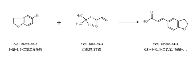 2.通過5-溴-2,3-二氫苯并呋喃和丙烯酸叔丁酯合成(2E)-3-(2,3-二氫苯并呋喃-5-基)丙酸