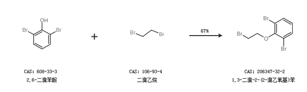 1.通過(guò)2,6-二溴苯酚和二溴乙烷合成1,3-二溴-2-(2-溴乙氧基)苯,收率約67%;