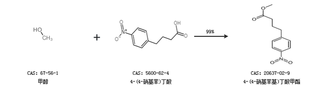 1.通過甲醇和4-(4-硝基苯)丁酸合成4-(4-硝基苯基)丁酸甲酯,收率約99%;