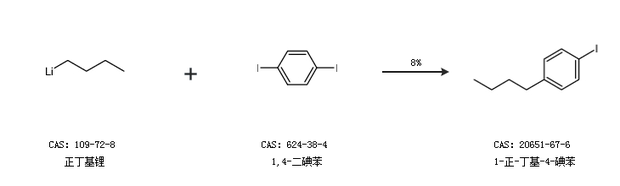 1.通過正丁基鋰和1,4-二碘苯合成1-正-丁基-4-碘苯,收率約8%;