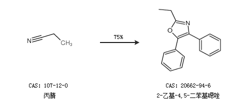 1.通過丙腈合成2-乙基-4,5-二苯基噁唑,收率約75%;