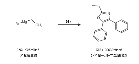 2.通過乙基溴化鎂合成2-乙基-4,5-二苯基噁唑,收率約97%;
