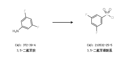 1.通過3,5-二氟苯胺合成3,5-二氟苯磺酰氯