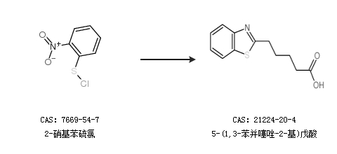 2.通過(guò)2-硝基苯硫氯合成5-(1,3-苯并噻唑-2-基)戊酸