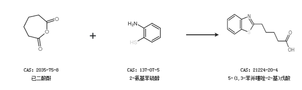 1.通過(guò)已二酸酐和2-氨基苯硫醇合成5-(1,3-苯并噻唑-2-基)戊酸