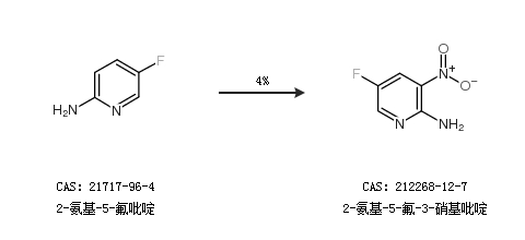 1.通過2-氨基-5-氟吡啶合成2-氨基-5-氟-3-硝基吡啶,收率約4%;