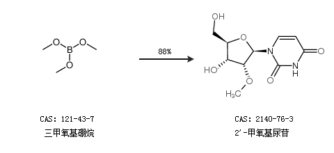 1.通過三甲氧基硼烷合成2''-甲氧基尿苷,收率約88%;