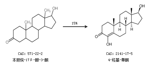 1.通過(guò)本膽烷-17β-醇-3-酮合成4-羥基-睪酮,收率約15%;