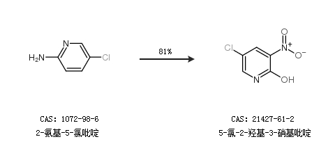 1.通過2-氨基-5-氯吡啶合成5-氯-2-羥基-3-硝基吡啶,收率約81%;