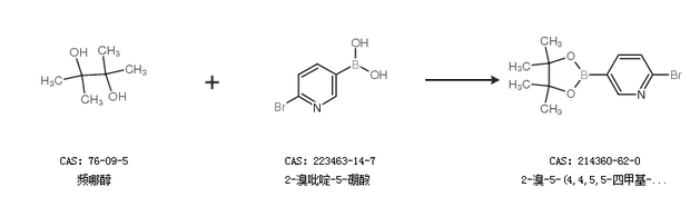 2.通過頻哪醇和2-溴吡啶-5-硼酸合成2-溴-5-(4,4,5,5-四甲基-1,3,2-二雜氧戊硼烷-2-基)吡啶