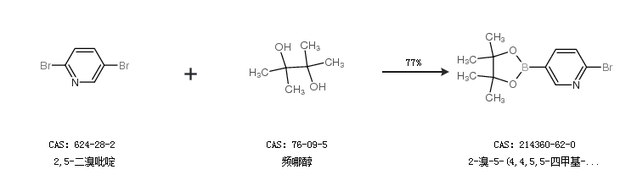 1.通過2,5-二溴吡啶和頻哪醇合成2-溴-5-(4,4,5,5-四甲基-1,3,2-二雜氧戊硼烷-2-基)吡啶,收率約77%;
