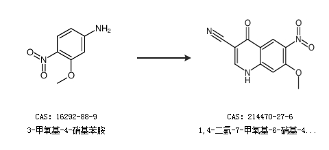 1.通過(guò)3-甲氧基-4-硝基苯胺合成1,4-二氫-7-甲氧基-6-硝基-4-氧代-3-喹啉甲腈