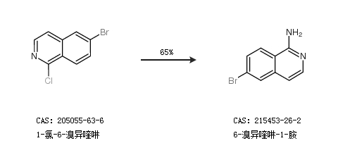 1.通過1-氯-6-溴異喹啉合成6-溴異喹啉-1-胺,收率約65%;