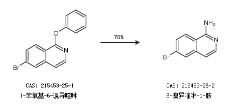 2.通過1-苯氧基-6-溴異喹啉合成6-溴異喹啉-1-胺,收率約70%;