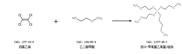 2.通過(guò)四氯乙烯和乙二醇甲醚合成四(2-甲氧基乙氧基)硅烷