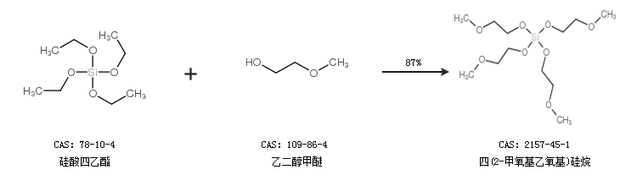 1.通過(guò)硅酸四乙酯和乙二醇甲醚合成四(2-甲氧基乙氧基)硅烷,收率約87%;