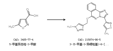 中文名稱 3-(5-甲基-3-異噁唑基)-6-[(1-甲基-1H-1,2,3-三氮唑-4-基)甲氧基][1,2,4]三氮唑并[3,4-a]酞嗪