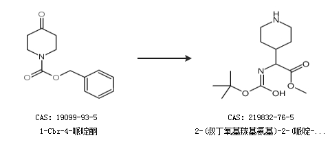 1.通過1-Cbz-4-哌啶酮合成2-(叔丁氧基羰基氨基)-2-(哌啶-4-基)乙酸甲酯