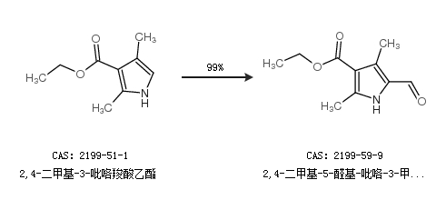 1.通過2,4-二甲基-3-吡咯羧酸乙酯合成2,4-二甲基-5-醛基-吡咯-3-甲酸乙酯,收率約99%;