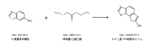 1.通過6-氨基苯并噻唑和(甲硫基)乙酸乙酯合成6,8-二氫-7H-吡咯并[2,3-g]苯并噻唑-7-酮