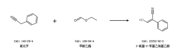 1.通過(guò)氰化芐和甲酸乙酯合成2-氰基-2-苯基乙烯基乙醇