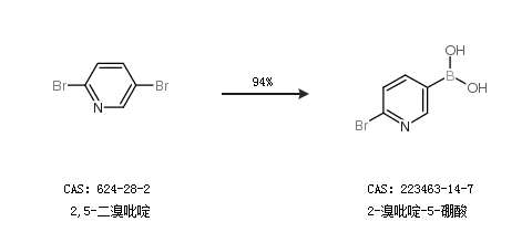2.通過(guò)2,5-二溴吡啶合成2-溴吡啶-5-硼酸,收率約94%;