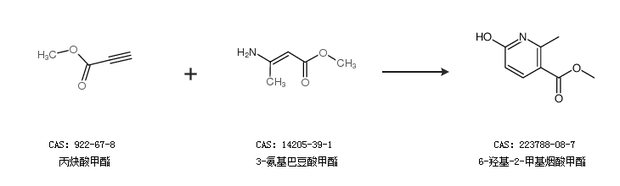 1.通過丙炔酸甲酯和3-氨基巴豆酸甲酯合成6-羥基-2-甲基煙酸甲酯