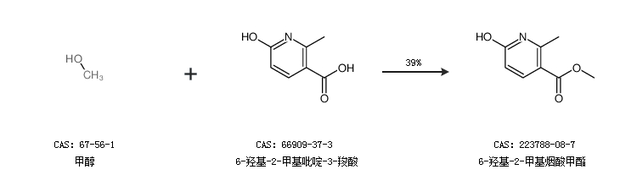2.通過甲醇和6-羥基-2-甲基吡啶-3-羧酸合成6-羥基-2-甲基煙酸甲酯,收率約39%;
