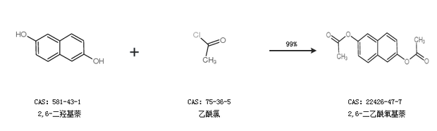 2.通過2,6-二羥基萘和乙酰氯合成2,6-二乙酰氧基萘,收率約99%;