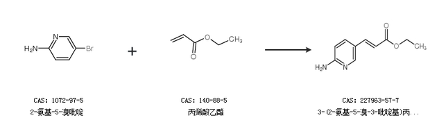 1.通過(guò)2-氨基-5-溴吡啶和丙烯酸乙酯合成3-(2-氨基-5-溴-3-吡啶基)丙烯酸乙酯