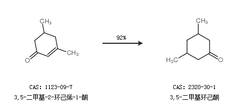 2.通過(guò)3,5-二甲基-2-環(huán)己烯-1-酮合成3,5-二甲基環(huán)己酮,收率約92%;