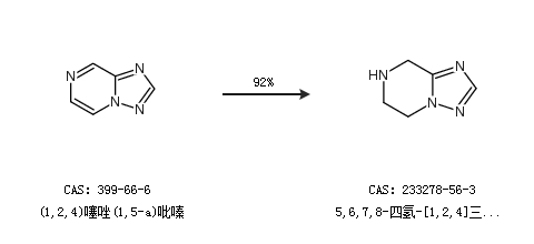 1.通過(1,2,4)噻唑(1,5-a)吡嗪合成5,6,7,8-四氫-[1,2,4]三唑[1,5-A]吡嗪,收率約92%;