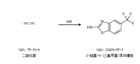 2.通過(guò)二硫化碳合成2-疏基-5-(三氟甲基)苯并噻唑,收率約44%;